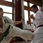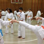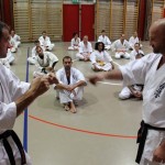 Le dimanche a été le moment des passages de grades, du 10ème au 7ème kyu, avec une bonne vingtaine de candidats. Autant le dire tout de suite tous ont résussi et ça n’a pas été un cadeau. L’examen s’est déroulé sur le mode participatif, les candidats au 7ème kyu, par exemple, ont exécuté le programme des grades antérieurs en même temps, etc. Je félicite l’ensemble des candidats pour leur énergie sans faiblesse qu’ils ont fournis durant les 3 heures qu’a duré ce test. Un bravo spécial à nos plus jeunes qui ont  été capable de la concentration nécessaire et ont bien surmontés la tension inévitable par moment dans ce gendre d’épreuve. Dies vous que vous venez d’ouvrir une lucarne sur ce que vous allez affronter lors de votre 1ère compétition. Bravo les gars!