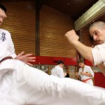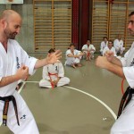 Des techniques aussi « connues » que Mawashi Geri,, par exemple, ont été réétudiées à la lumière des connaissances morphologiques et médicales de Bertrand. Même les ceintures noires présentes ont pu en prendre de la graine. L’apport du taiki ken comme phase d’échauffement s’est rapidement manifesté redoutable pour les muscles de nos cuisses et jambes peu entraînées à cette sollicitation. Du travail en perspective.